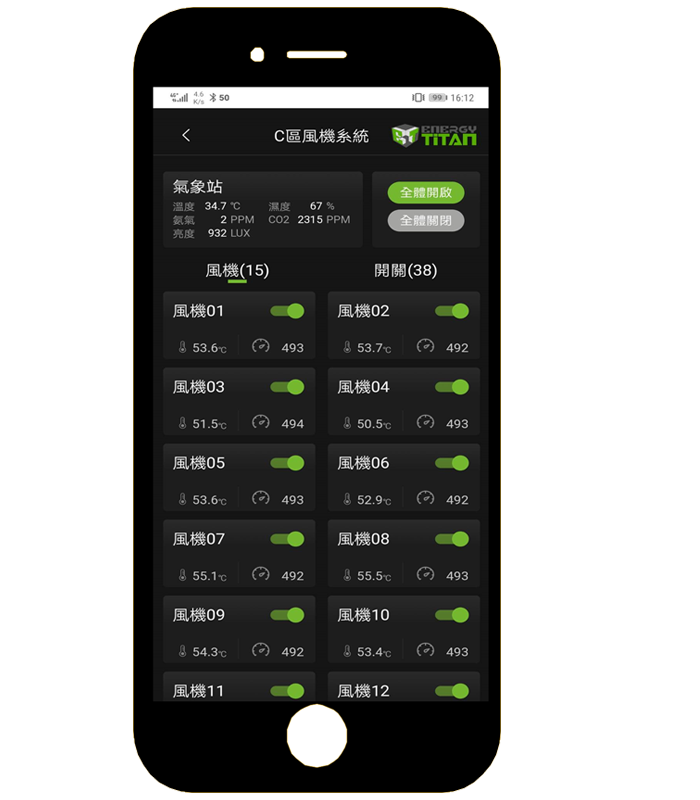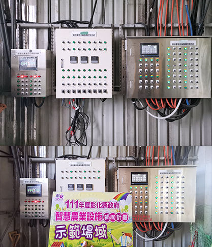 可利用感測器主機傳至網路上的數值,啟動或關閉農地的各設備開關。如:風扇、水簾、加熱器、噴霧、側窗等。